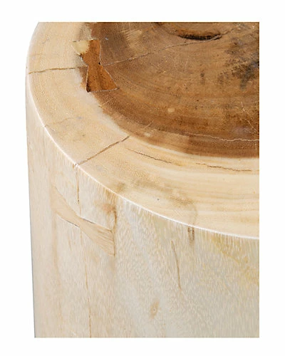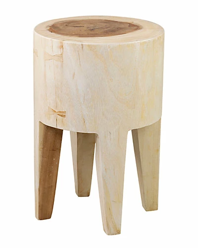 - Design details: Praised for being both strong and durable, teak wood also has a beautiful golden hue favored by woodworkers and designers alike. Featuring cut out legs the East at Main Abruka Teak Stool is hand carved from a solid trunk section, showcasing the trees rings on its surface. With its natural wood finish, each hand-made round wooden accent stool boasts unique patching and detailing.