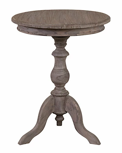 - Design details: Who would think that this curvy classic silhouette would be crafted so beautifully from sturdy Indonesian Mindi wood? The East at Main Allura Pedestal Round End Table is hand-painted with just the slightest hint of distressing for a vintage feel. Perfect as a bedside table, or next to the sofa!