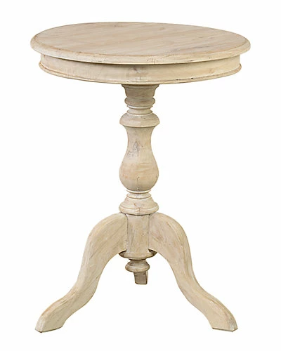 - Design details: Who would think that this curvy classic silhouette would be crafted so beautifully from sturdy Indonesian Mindi wood? The East at Main Allura Pedestal Round End Table is hand-painted with just the slightest hint of distressing for a vintage feel. Perfect as a bedside table, or next to the sofa!