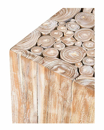 - Design details: Neutral lovers, we have been thinking of you! Nothing fits the serene palette of natural teak wood coloring with a light white wash finish. Each piece of teak is a unique branch, joined in the center then shaved smooth on the sides, giving the rustic pieces a sharp finish.
