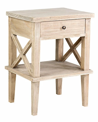 - Design details: An instant classic in modern rustic design, the Bevan Side Table beautifully features all natural mindi wood in its unfinished form! Petite enough to live next to your bedside or chair side, each piece features a drawer and lower shelf for additional storage options. Each piece’s craftsmanship is apparent with the X-design on either side for a beautiful bonus!