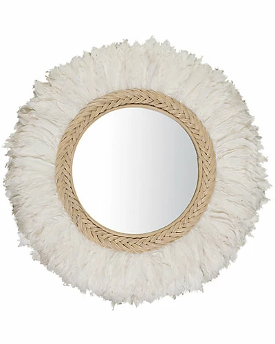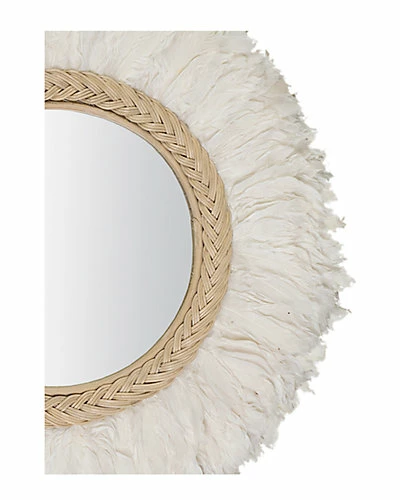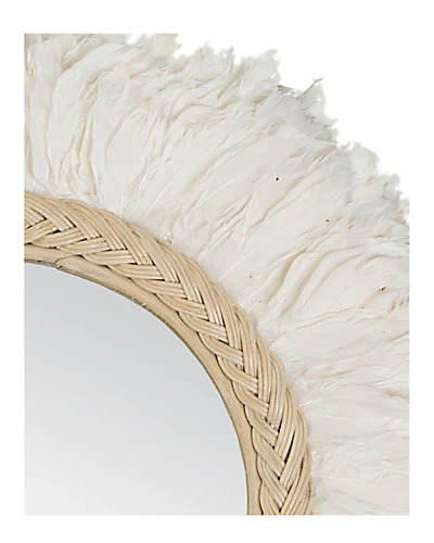 - Design details: The unique design of our East at Main Brandi Feather Mirror is everything. The mirror combines the softness of feathers traveling along the beautifully woven wicker frame, adding extra visual texture to the gently romantic look. The handcrafted mirror is unique which adds to the natural beauty of each piece. Will make a chic statement in any space.
