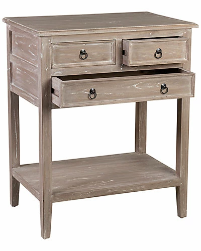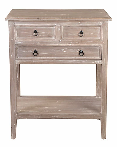 - Design details: Crafted of durable solid Mindi wood, this East at Main Eculid storage-rich side table is the perfect accent to any room in you home. Made to be long-lasting and attractive, this 3 drawer accent table is offered in a Brown Wash or Natural finish.