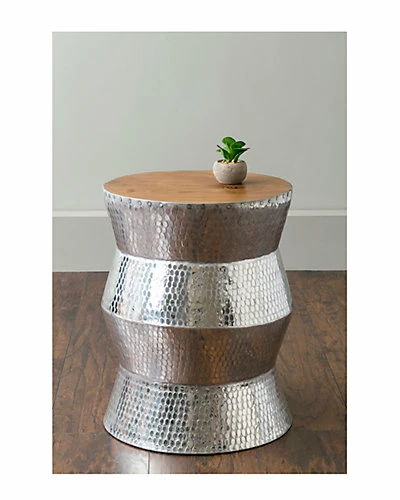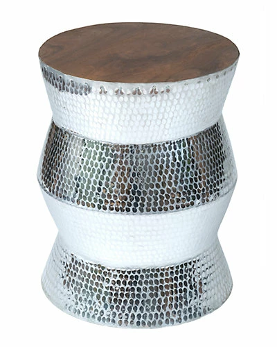 - Design details: New uses for timeless materials is something we’re very proud of here at East at Main. Hammered metal is shaped into a zig zag design, and paired with a slice of teak for lovely new accent table.