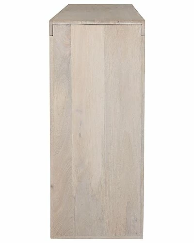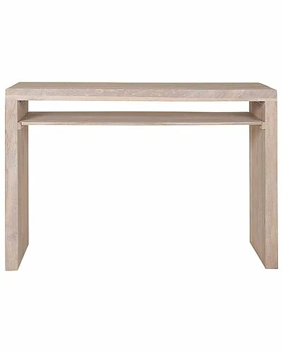 - Bring a contemporary and minimalist feel to your space with the mango wood console table. This piece features a top shelf for ample display space. A second, open shelf for storage and easy access brings added functionality. A smooth sanded white finish with clean lines will complement any room of your home.