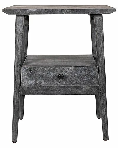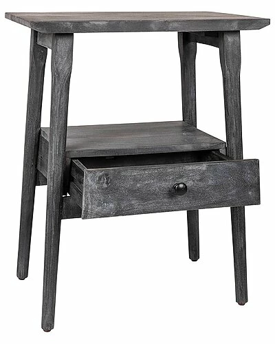 - This farmhouse inspired end table features a solid mango wood top and beveled table edge for a modern silhouette sure to please the eye. The open shelf means there is plenty of room for all your before-bed necessities. This piece works perfectly in your living room beside your couch or favorite chair, as a telephone table or plant stand, or in your bedroom as a nightstand.
