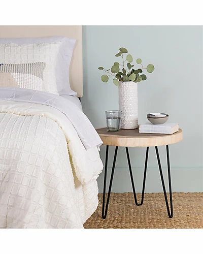 - Design details: How wonderfully nostalgic to see modern hairpin legs make such a fashionable comeback! Topped off with cross-cut slices of teak trunk, our Larkin tables are the best of then, and now.