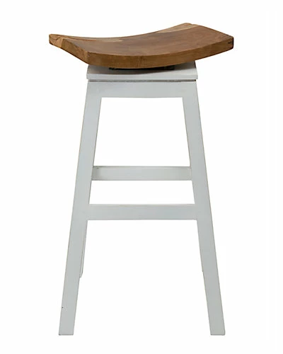 - Design details: With a saddle -inspired swivel seat made from gorgeous, natural Indonesian teak, this handsome stool is available in both counter and bar heights. Pick your base color: Natural, Costello Grey, one Classic White