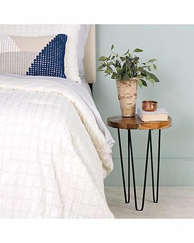 - Design details: Bring contemporary-chic style to your living room or den with this sleek accent table, showcasing a geometric wood design and open metalwork legs.