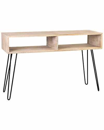 - Design details: The Oxford mindi wood console table is an unique combination of a slat inspired design and a console table, functioning as storage and adding style to your living space. This piece is made out of natural mindi wood, and this design’s only limit is your imagination.