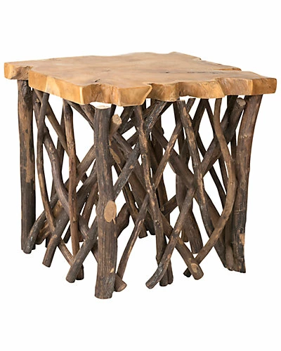 - Design details: Yet another eco-chic table in our impressive lineup, the Pope features an indicate base made of branches, and a pieced teak root top with a natural edge.