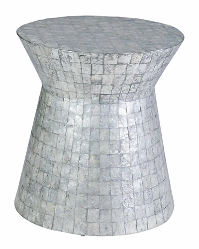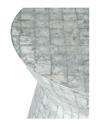 - Design details: Luminous capiz shell is collected and gently dyed to adorn the modern, hourglass Rossum Table. The table is then sealed in clear, low-voc resin for added durability. The texture and shine of each table makes it glamorous enough to work beautifully in any space!