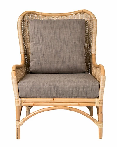 - Design details: Build a charming sunroom reading nook or accent your living room ensemble with this lovely Lyndon accent chair, showcasing beautiful rattan weaving and a dark brown cushion.
